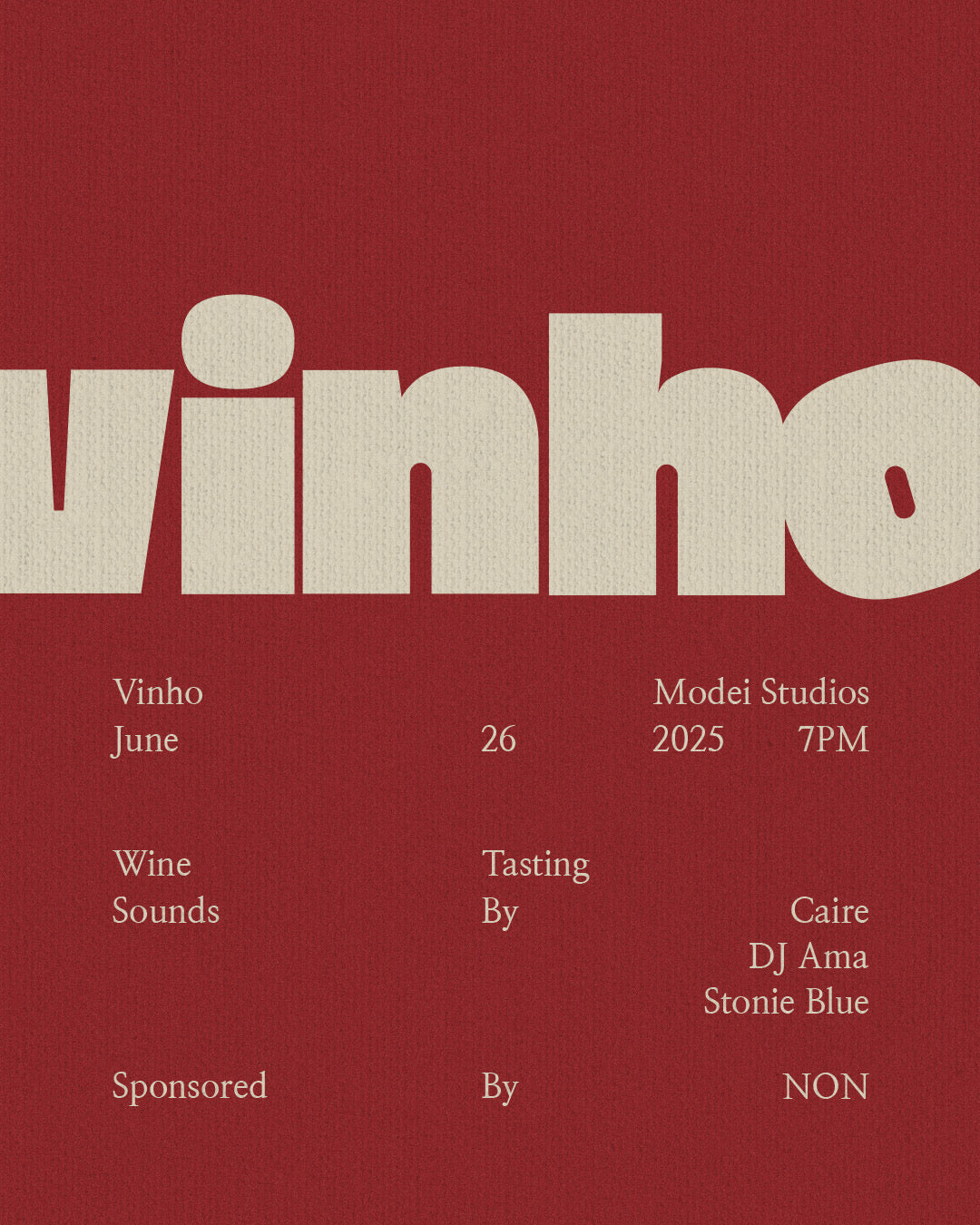 Vinho –a monthly wine-tasting and listening experience. Enjoy a glass of wine and a rotating lineup of live DJ sets every month curated by Caire.