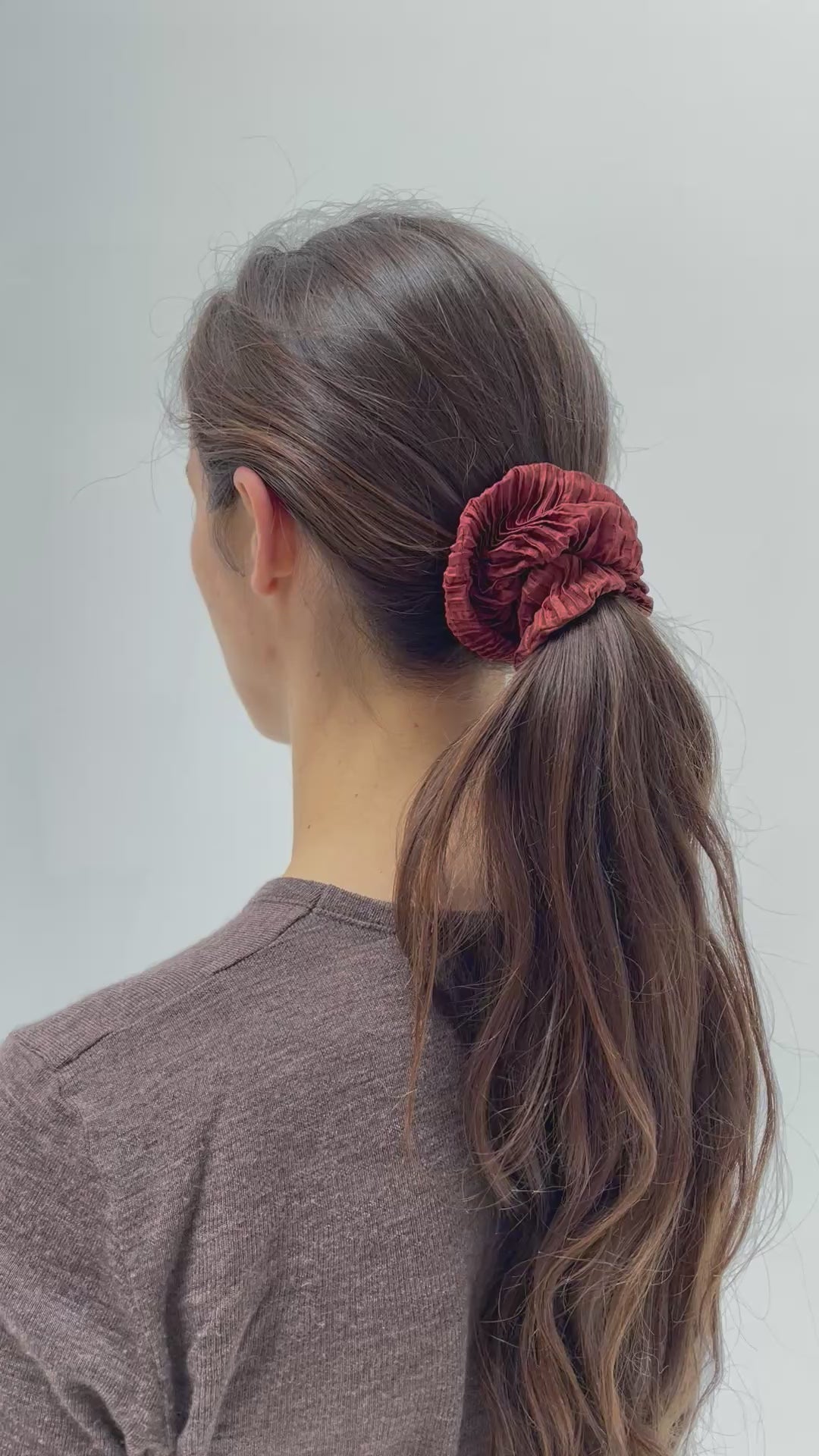 Elevate your look with this dramatically oversized scrunchie, botanically hand dyed and sewn in France.