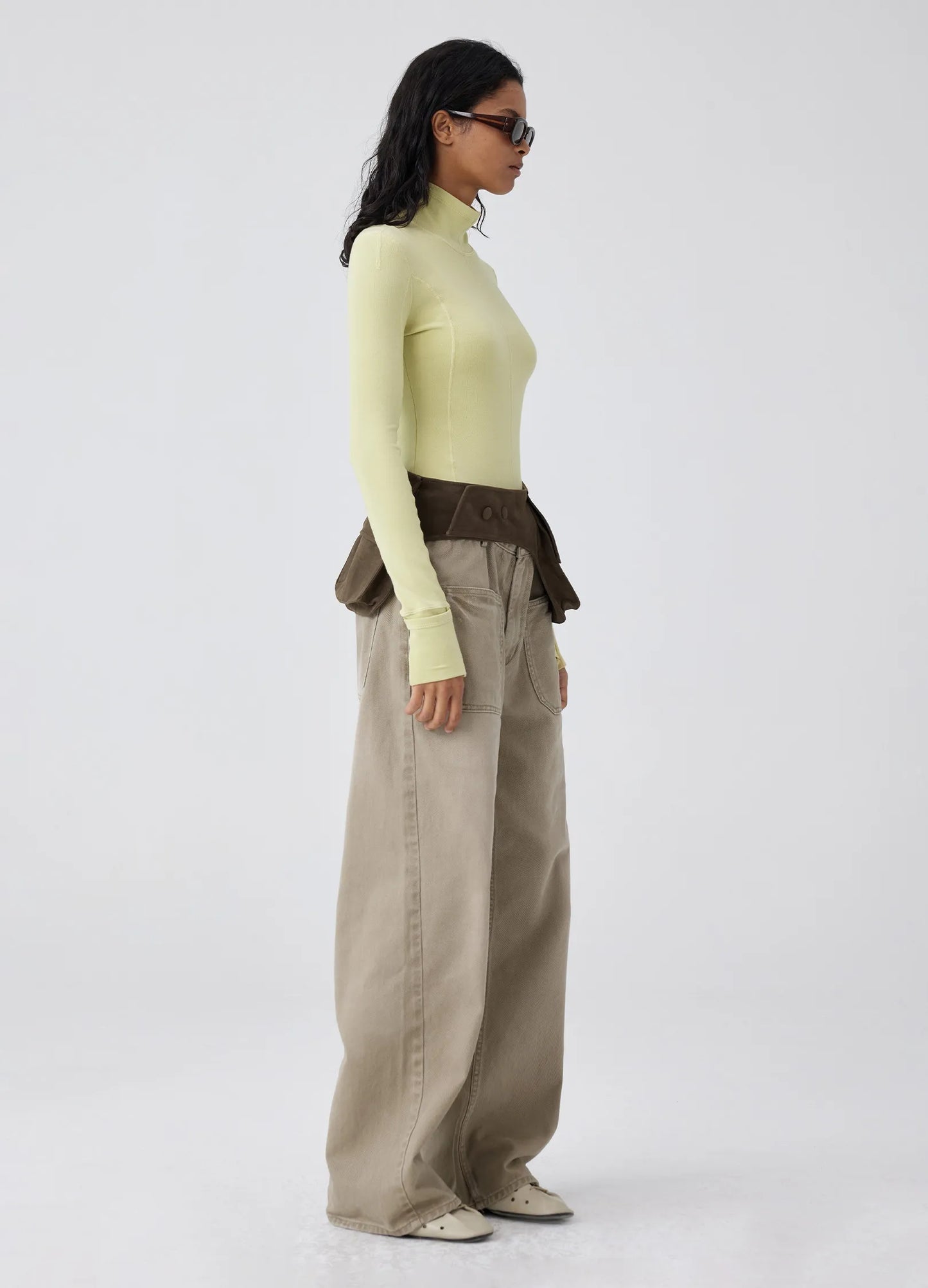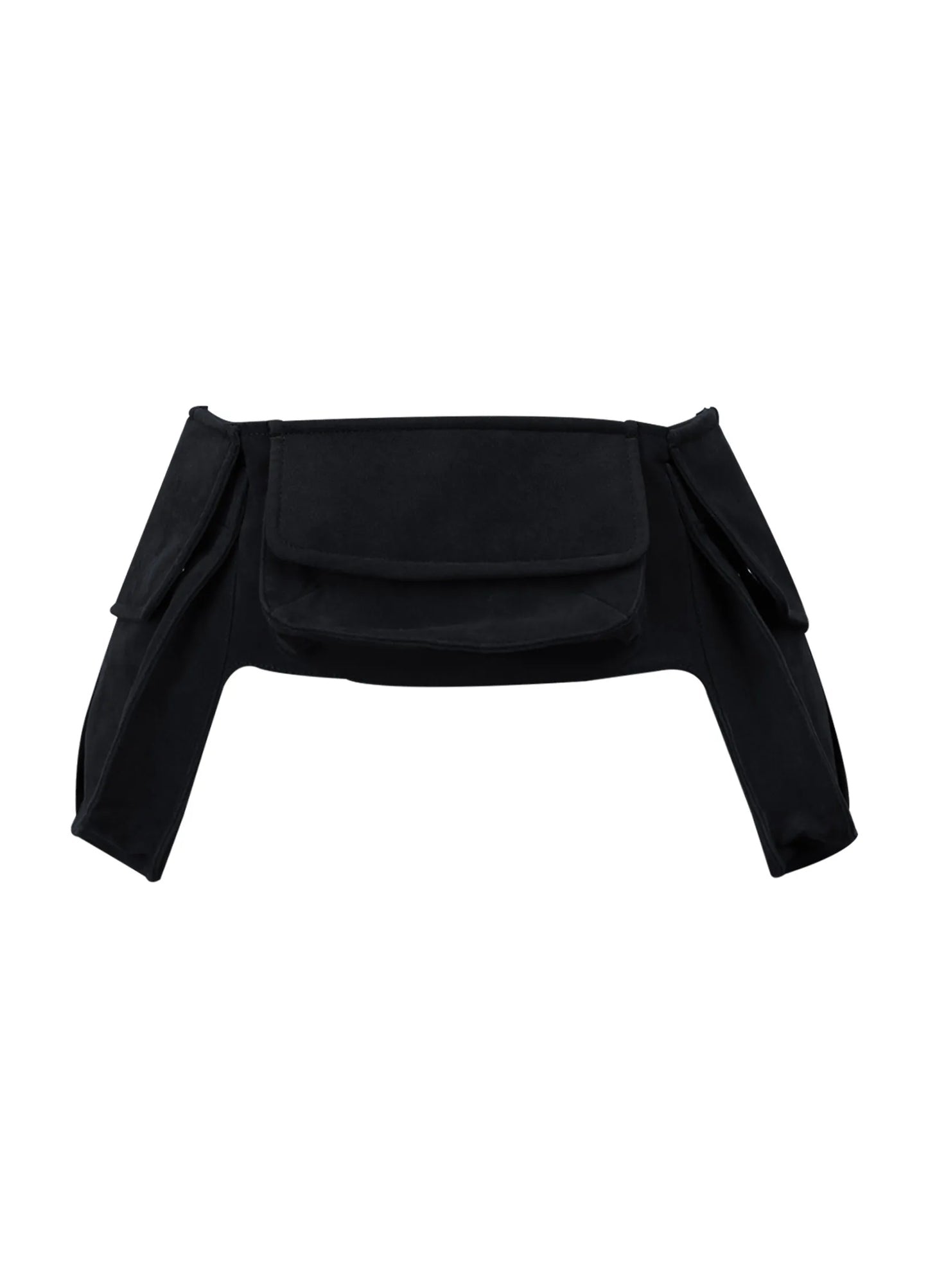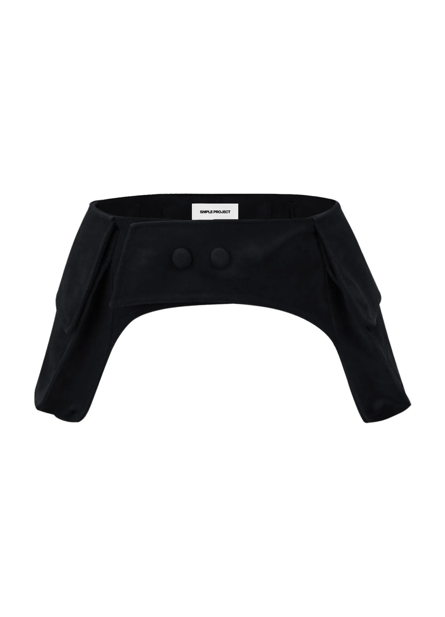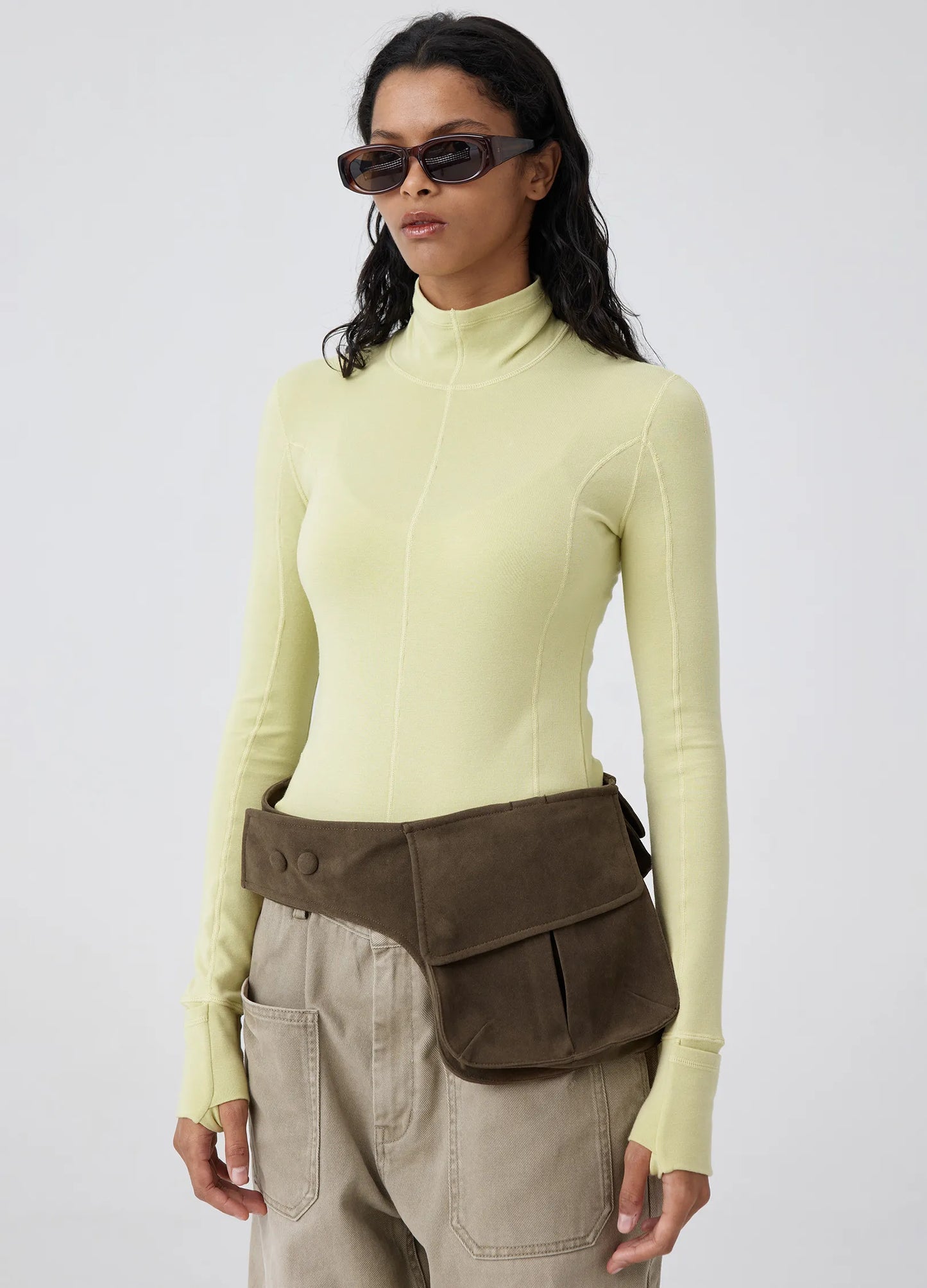 Suede holster with multiple cargo pockets and adjustable waist fastening.